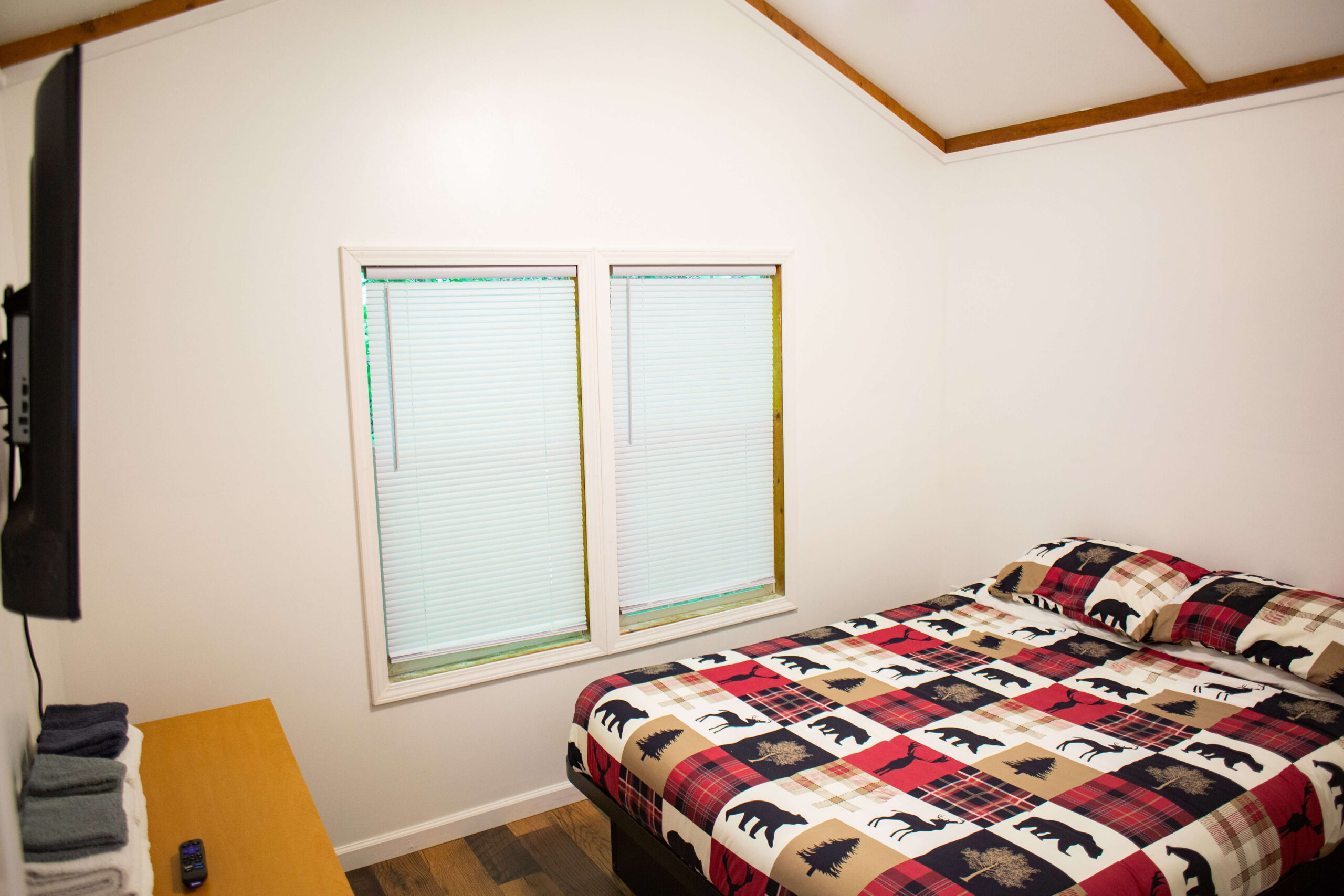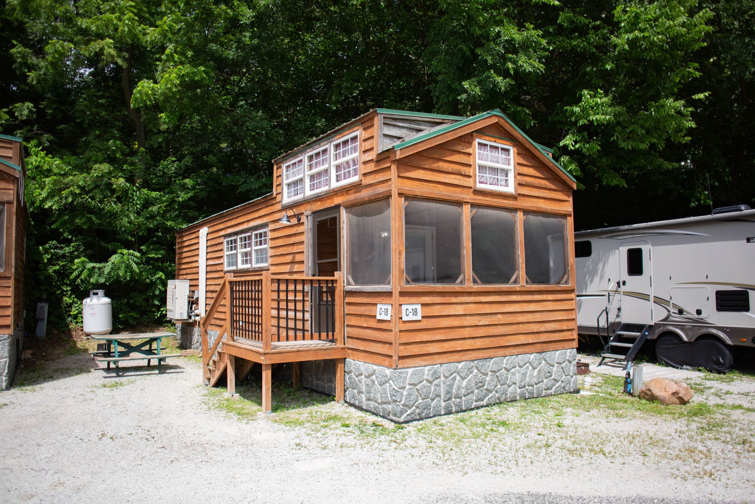 Each Sleeper Cabin is a log cabin style lodging unit. Sleeper Cabins do not have bathrooms or cooking facilities inside them. However, our award-wining bathhouses are easily accessible and open 24 hours everyday. All Sleeper Cabins are pet-friendly. Maximum 2 adults. $25 pet fee required at check-in.